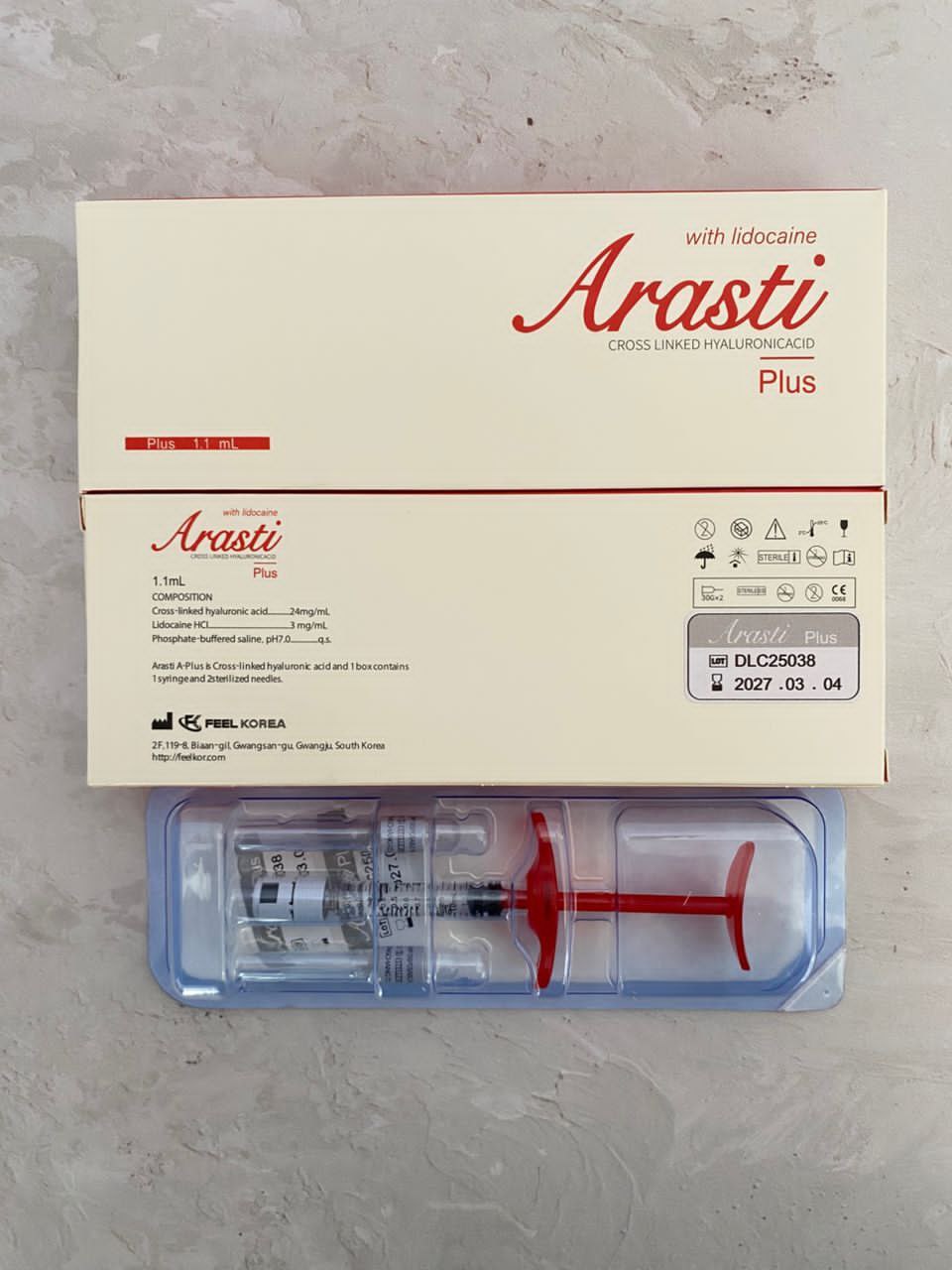 آراستی پلاس یکی از فیلر های پوستی برند آراستی است که برای رفع خطوط متوسط تا عمیق و حجم دهی طبیعی به صورت طراحی شده است. این محصول حاوی اسید هیالورونیک خالص و لیدوکائین است که علاوه بر نتایج موثر، تزریقی بدون درد را فراهم میکند. از کاربردهای آن میتوان به درمان خطوط خط خنده و ایجاد هماهنگی و حجم طبیعی در نواحی مختلف صورت اشاره کرد. حجم استاندارد آن ۱ تا ۲ میلی لیتر است و نتایج آن بین ۶ تا ۱۲ ماه ماندگار خواهد بود.
